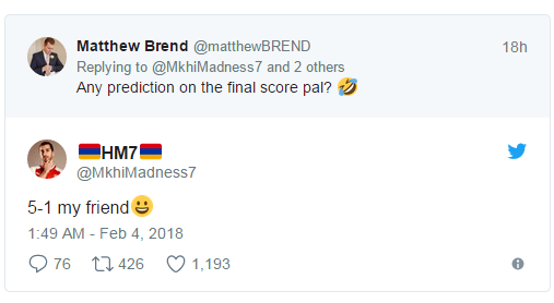 然后有一名网友问“MkhiMadness7”能不能预测最终比分,他回复道:“5-1,我的朋友。”最终比分与“MkhiMadness7”预测的一模一样,这真可谓是神预测。