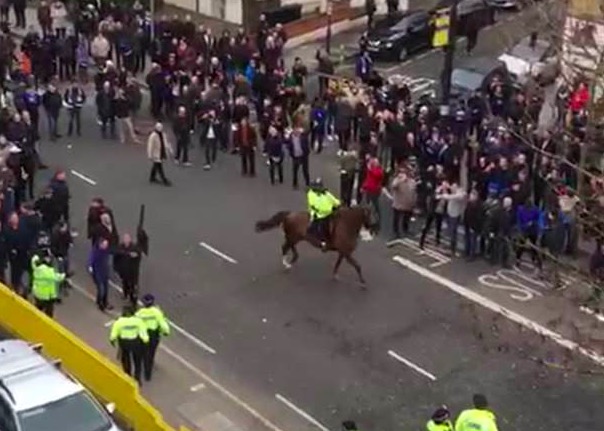 比赛后,球迷互相投掷啤酒瓶和交通锥标,起初只有一小部分警方尝试平息球迷的敌意,但双方的冲突此后升级了。