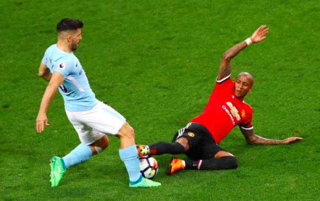 虽然阿什利-扬碰到了球,但他的鞋钉踩到了阿圭罗的脚踝。不过后者并无大碍,参加了今天的训练。