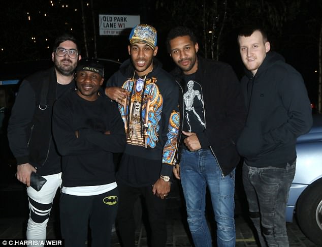 据悉奥巴梅扬这天晚上穿着一件价值高达700镑的范思哲上衣,以及一双550镑的鞋子,同时他还戴着一顶印有“PEA”字样(奥巴梅扬名字缩写)以及蝙蝠侠团的帽子,脖子上也有一条定制款的金项链。