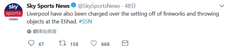 大赢家4月11日讯 天空体育消息称,利物浦将会因为球迷们在阿提哈德球场燃放焰火和投掷物体而遭到欧足联方面的指控。