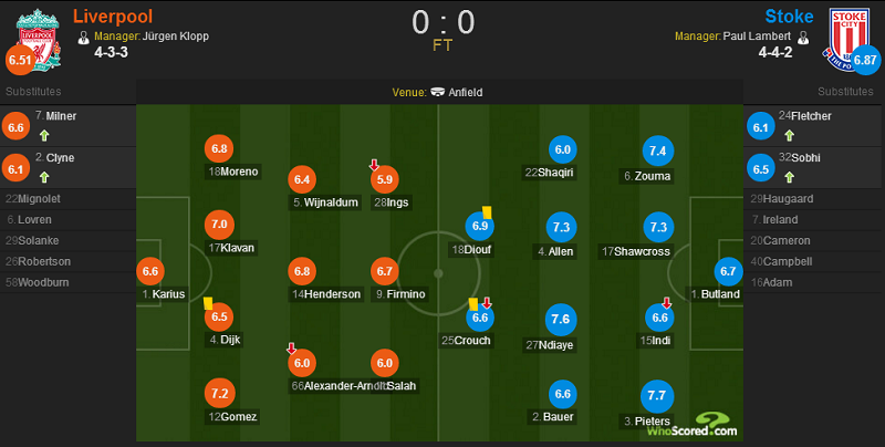 戈麦斯获得 队内最高分7.2分,斯托克城方面恩迪亚耶得到全场最高分7.6分。