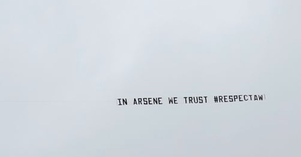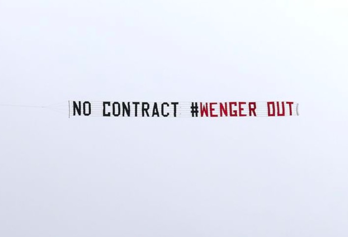 去年,曾有飞机拖着“不给合同,温格下课”的横幅飞过阿森纳对阵西布朗的比赛上空。之后又有另一架飞机拖着“我们信任温格,尊重他”的横幅飞过,一时引发大量关注。