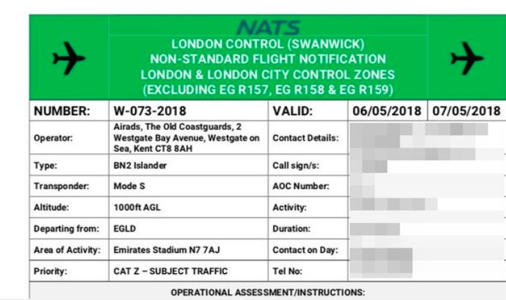 Airads Banners ——正是2017年两次拉着横幅飞过阿森纳比赛上空的飞行公司——发推确认了预定信息。这张收据显示,一张横幅将在阿森纳最后一个主场比赛飞过酋长球场上空,那将是5月6日对阵伯恩利的比赛。