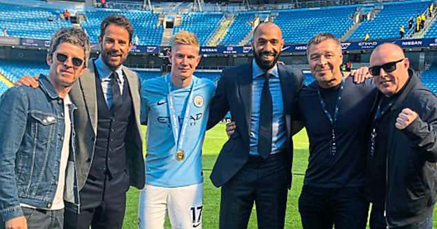 尽管本赛季对阵哈德斯菲尔德的比赛,曼城拿出绝对精彩的表现,但这并没有阻挡德布劳内、绿洲乐队诺尔-加拉格(曼城死忠)、我、亨利享受曼城的夺冠庆典!