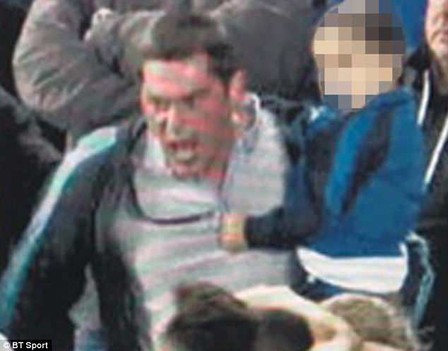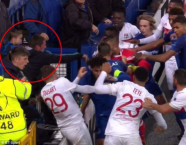 那场比赛埃弗顿最终1-2落败,当时阿什利-威廉姆斯将里昂门将洛佩斯推到了广告牌处,而这名叫费兹杰拉德(Michael Fitzpatrick)的球迷抱着自己3岁的儿子,趁乱击打了里昂球员安东尼-洛佩斯。