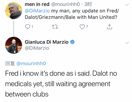 大赢家6月2日讯 迪马济奥日前在推特上回复了球迷的提问,根据他的回答来看,“弗雷德转会曼联的交易已经完成,而另外一名边后卫达洛特依旧没有进行体检,他目前还在等待两家俱乐部达成协议。”