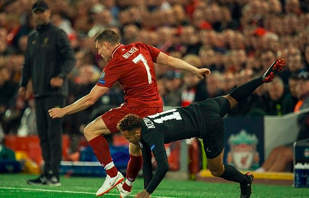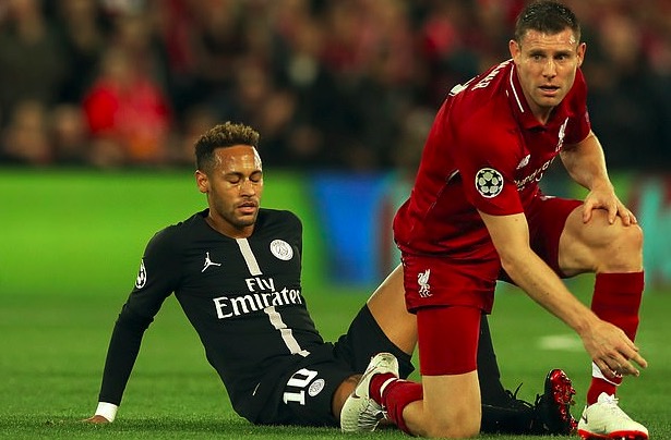 大赢家9月19日讯 利物浦中场米尔纳在自己的 Ins 里上传了一张在比赛中和内马尔拼抢的照片,他的配文逗乐了球迷。
