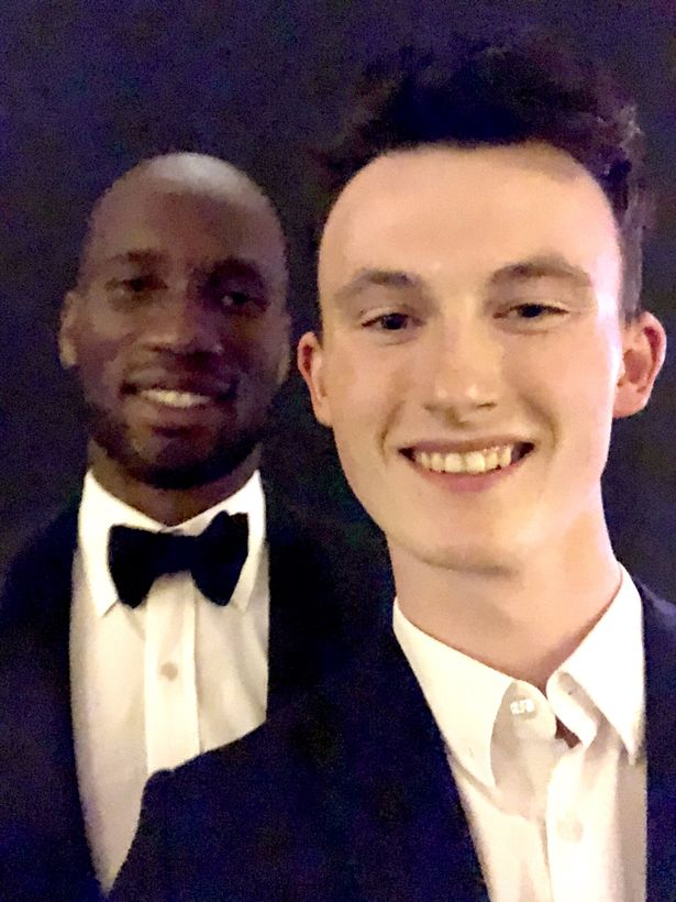 这名前切尔西球员成功地被这名名叫 Niall Moran的年轻人说服,带其参加颁奖典礼而使其不会被安保人员驱逐。