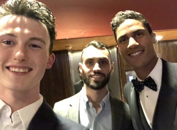 在后场,Niall Moran偷偷摸摸地与许多大牌取得了合影,这些大牌包括德罗巴、埃梅里和皇马球员瓦拉内等人。