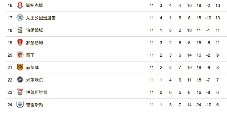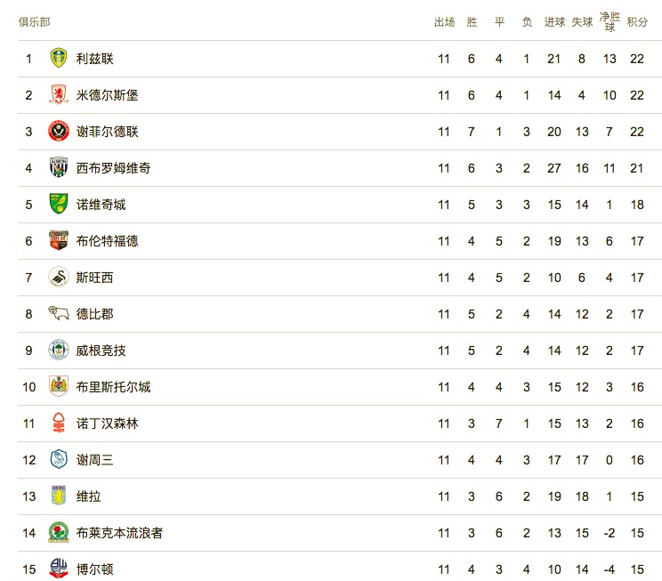 英冠积分榜: