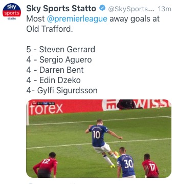 大赢家10月29日讯 西于尔兹松在本场客战曼联的比赛中打进1球,他在老特拉福德已经打进4粒英超客场进球,仅次于杰拉德。和他一样多的还有阿圭罗、达伦-本特和哲科。