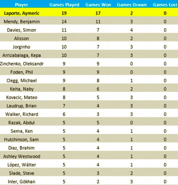 在这场比赛中,拉波特创造了一项新的记录:1月加盟的他已经成为英超历史上首秀之后保持不败场次最多的球员。拉波特总共打了19场比赛,取得的成绩是17胜2平。