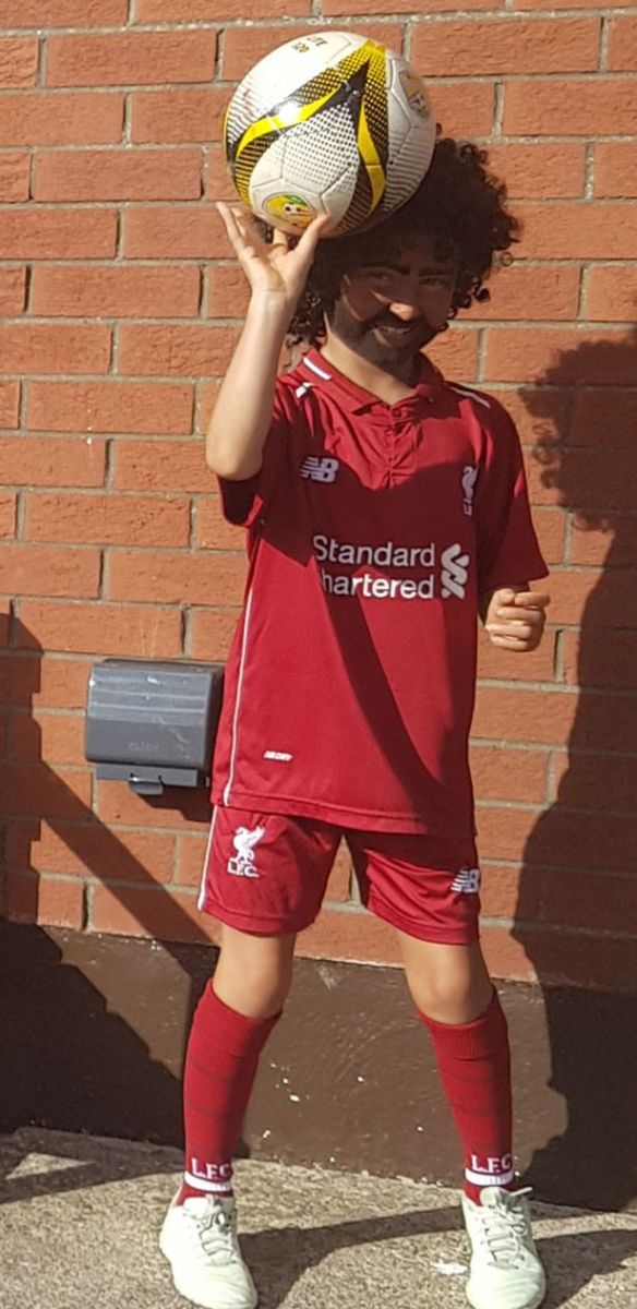 大赢家10月30日讯 来自爱尔兰的9岁小球迷Madison McGuane在这个万圣节有着一套全新的造型,她将自己的身体涂黑,戴上假发套画上胡须,再穿上全套利物浦装备变身“迷你萨拉赫”。