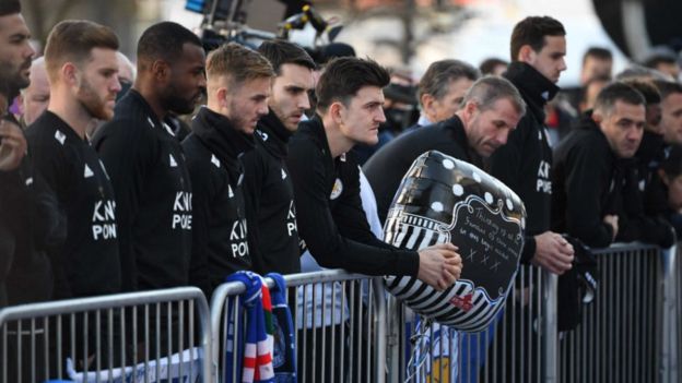 王权球场外摆满了球迷和当地民众献给维猜的鲜花,维猜的儿子、莱斯特城俱乐部副主席与母亲一同来到现场,敬献花圈之前先与球员们进行了会面。
