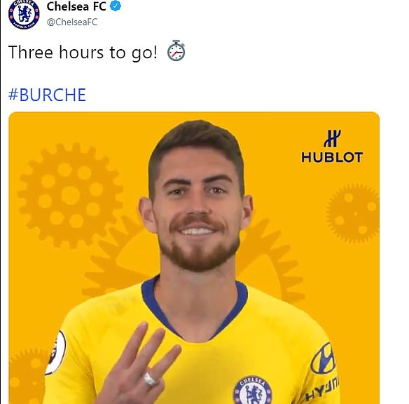 在周日4:0大胜伯恩利的比赛之前,切尔西在推特上发布了一张若日尼奥的照片,图片中若日尼奥竖起三根手指,配文道:“还有三个小时!”