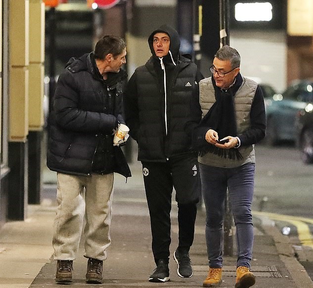 当晚,穆里尼奥和一位同行者来到了曼彻斯特的市中心。穆帅身穿全套的曼联运动服,戴起上衣的帽子来御寒。