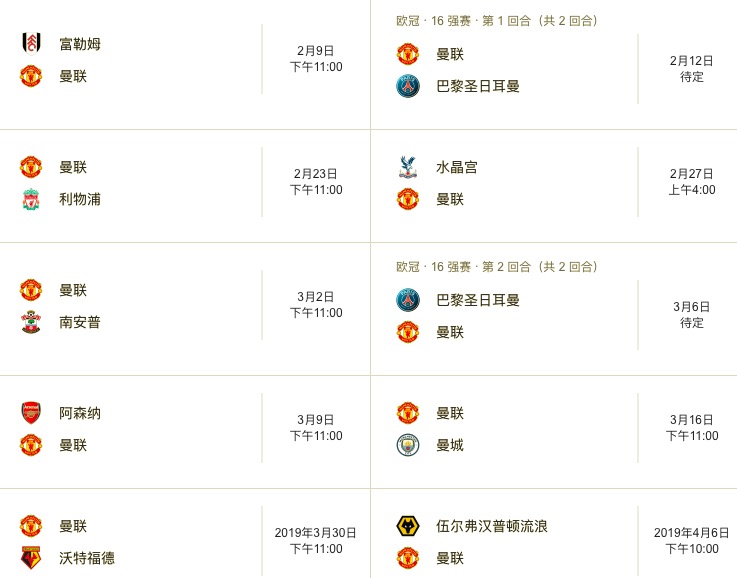 大赢家12月17日讯 欧冠1/8决赛抽签结果揭晓后,赛程也随之确定。两场欧冠比赛后曼联都将在联赛中遭遇劲敌。