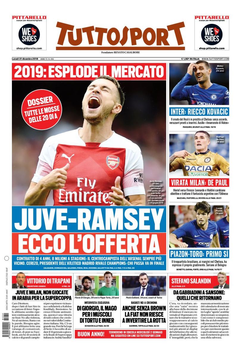 今年夏天尤文就从利物浦免签了德国中场埃姆雷-詹。现在《都灵体育报》头版指出,拉姆塞已经越来越接近加盟老妇人。