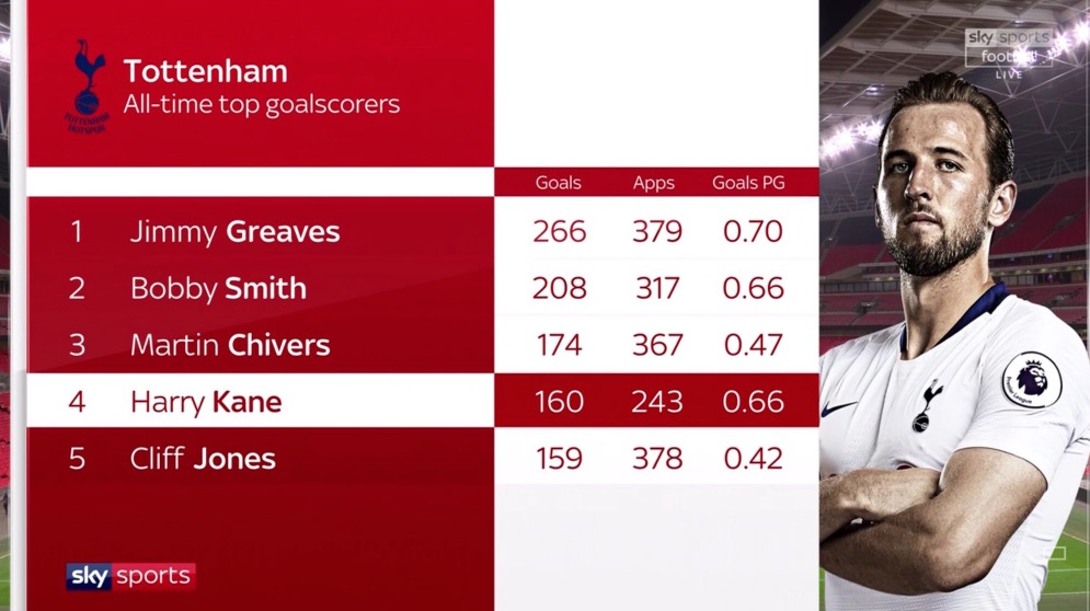 此外,这是凯恩为热刺打进的第160球,排名队史第四。