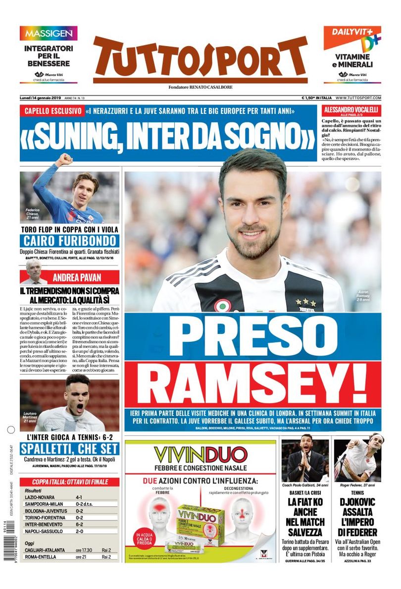 尽管阿森纳为这个月出售拉姆塞继续要价2000万欧元,但该体育日报声称尤文仍然没有放弃,不过不会接受这么高的转会费。