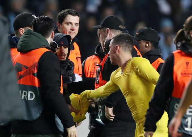 有安保人员开始介入,而阿扎尔则大度地表示:“这不是什么事故,他只是想要我的球衣。”于是阿扎尔脱下了自己的球衣,送给了这位球迷。