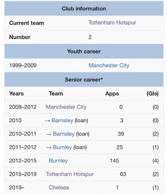 在维基百科页面上,特里皮尔的职业生涯中多了切尔西队,而且显示他出场1次打进1球。