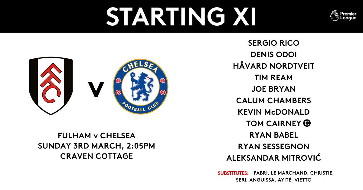 大赢家3月3日讯 北京时间3月3日22:05,英超第29轮,富勒姆vs切尔西,双方首发阵容出炉。