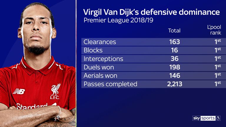 范戴克本赛季表现出色,在解围、阻挡、抢断、对抗方面都是利物浦的第一人。本赛季他出场踢了2755分钟的比赛,竟然从来没被人过掉过。他也是本赛季出场时间1000分钟以上的球员中唯一做到这一点的球员。范戴克具体的数据如下: