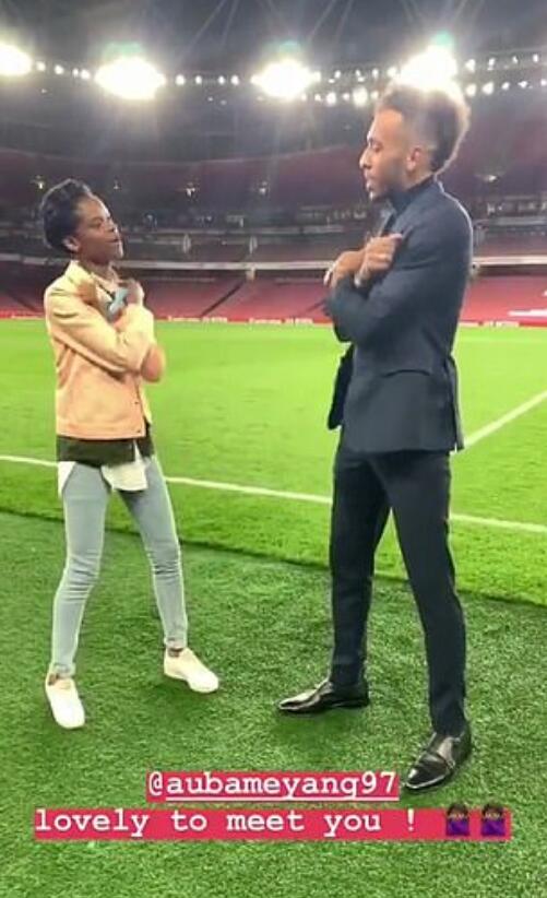 在和赖特进行交流后,奥巴梅杨送给了她一件阿森纳球衣表示感谢。