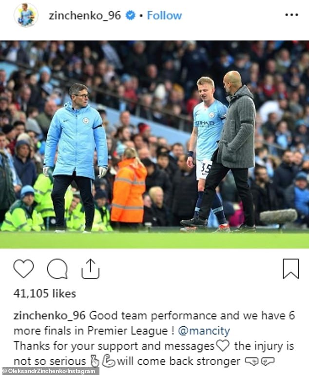 而津琴科在个人Ins发文表示:“这是一场精彩的比赛,球队表现非常出色,目前我们还剩最后六场英超联赛!感谢所有人对我的支持与关心,我的伤势并不严重,我将尽早回归并变得更加强大。”