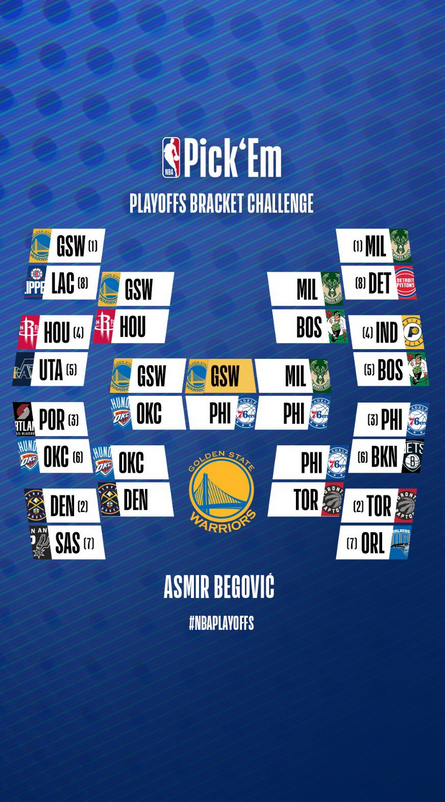 对于一职业些足球运动员兼篮球球迷来说,这个机会也不容错过,这是伯恩茅斯门将贝戈维奇(新闻配图中左手边高个)对今年季后赛结果的预测: