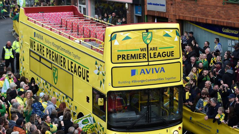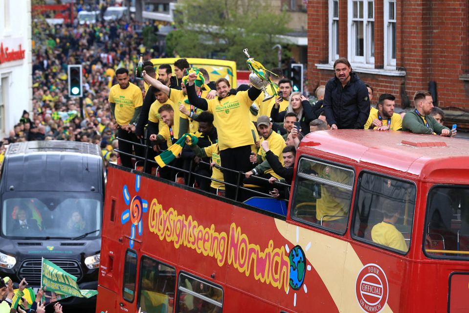 大赢家5月7日讯 诺维奇获得了本赛季英冠联赛的冠军,已经确定升入下赛季的英超,不过在进行夺冠巡游时,诺维奇的特制大巴抛锚了。这辆大巴原本为这次巡游特别定做,上面还印有“我们进英超”了的标语。