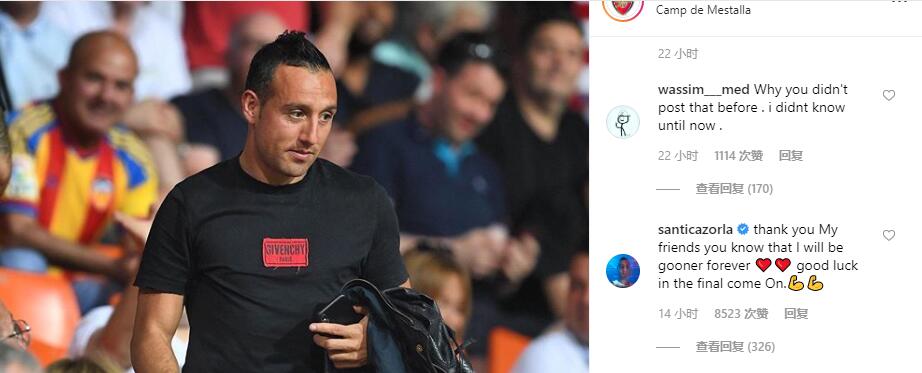 比赛中,有转播镜头拍到前阿森纳球员卡索拉在看台上观看了老东家的比赛,随后,阿森纳官方Ins转发了这一照片,并写道:让我们看看是哪位老朋友来支持我们了。