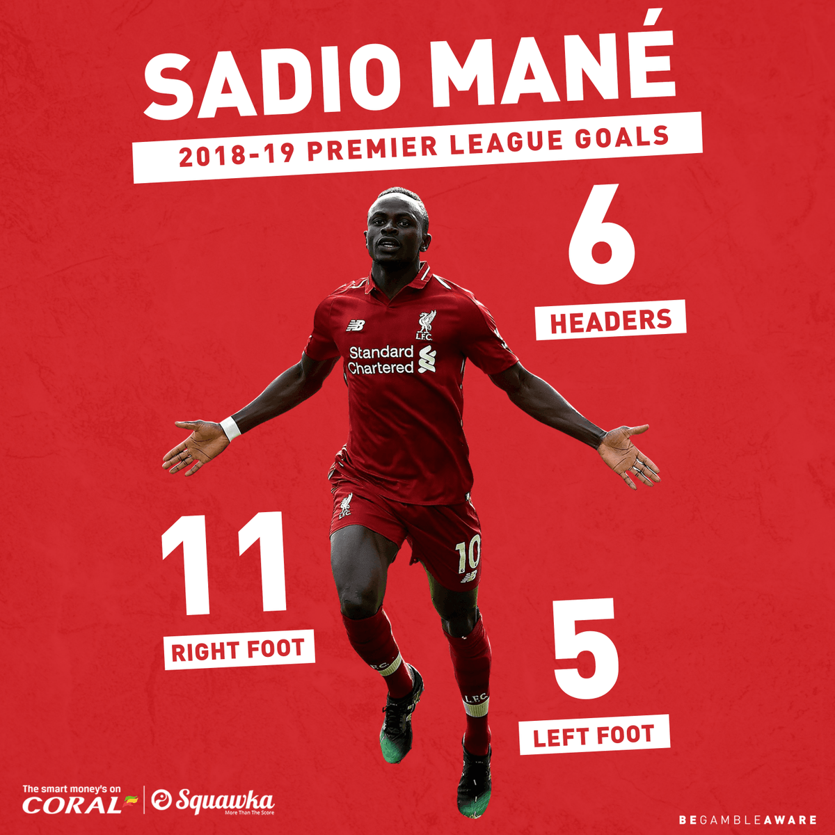 而马内的技术是最为全面的,他本赛季在英超中用左脚、右脚和头球进的球都超过了5粒,也是英超中的独一份。