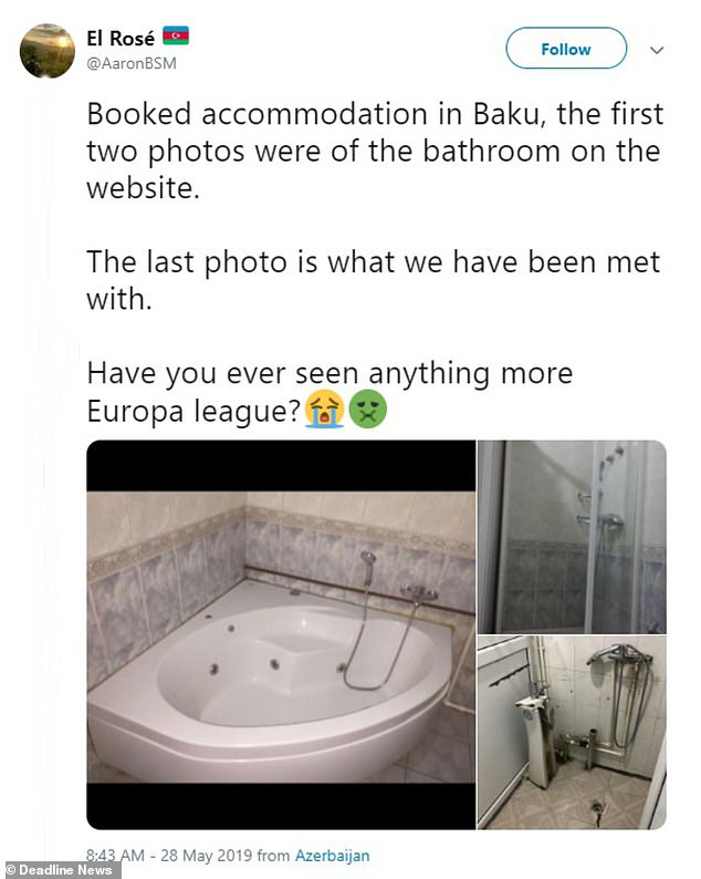 一位名叫亚伦的阿森纳球迷则在自己的社交媒体上吐槽了巴库的住宿条件。