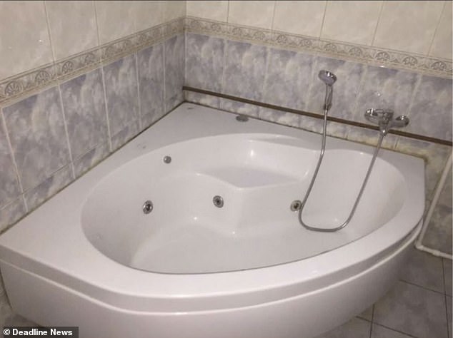 第一张宣传图中,有一个带有按摩功能的浴缸,并且周围的瓷砖非常的干净整洁。