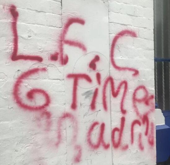 红军球迷在塔楼上喷上了大红色的6,于是这座232年的标志性建筑便被涂鸦破坏。