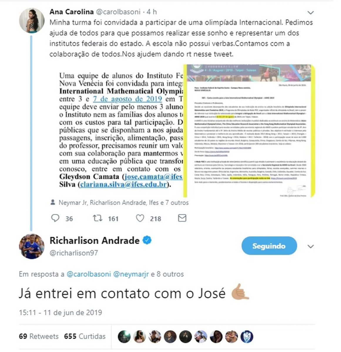 大赢家6月13日讯 巴西国脚理查利森目前正紧锣密鼓地进行着美洲杯的备战,不过他忙里偷闲,看到了社交媒体上家乡孩子的求助。