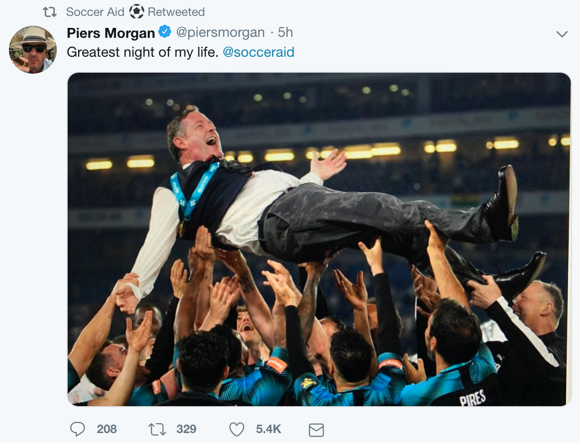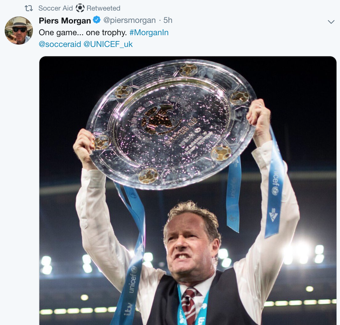 赛后,摩根还在推特上自吹:“一场一冠。活到现在最棒的一个晚上。”