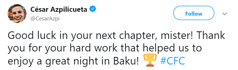 阿斯皮利奎塔:“感谢您这一年来的辛勤付出,并帮助我们夺得了欧联杯冠军。愿您下一段旅程好运。”