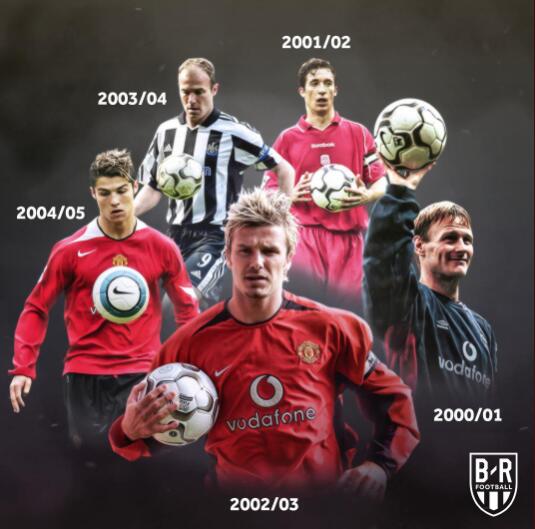 随后B/R也发布了一套海报,用每个赛季具有代表性的球星盘点英超过去20年各个赛季的用球。