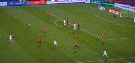 慢镜头显示,萨拉赫的射门刚好从后卫的膝盖旁边飞过,直挂球门死角。