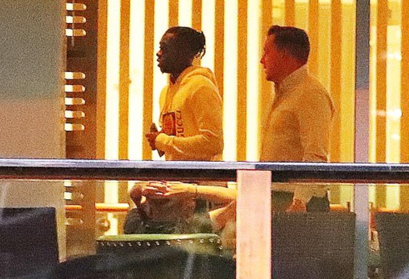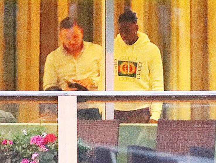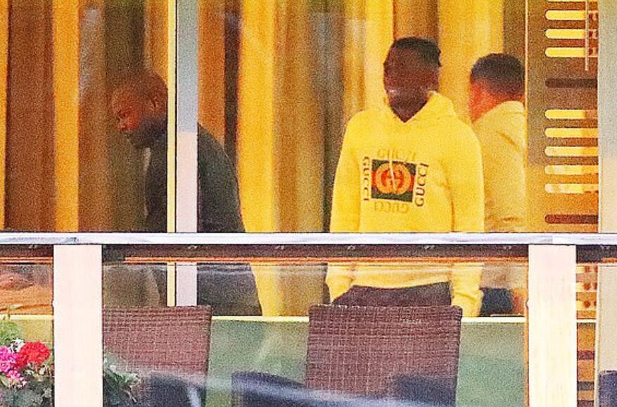 21岁的万-比萨卡身穿一件白色Gucci套衫,和他的随行人员从一起,其中包括他的家人和水晶宫队友、前曼联球员扎哈的哥哥,他也是万-比萨卡团队的一员。