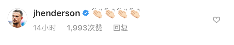 利物浦队长亨德森也对这条微博做出了回应,他发了四个鼓掌的表情符号。