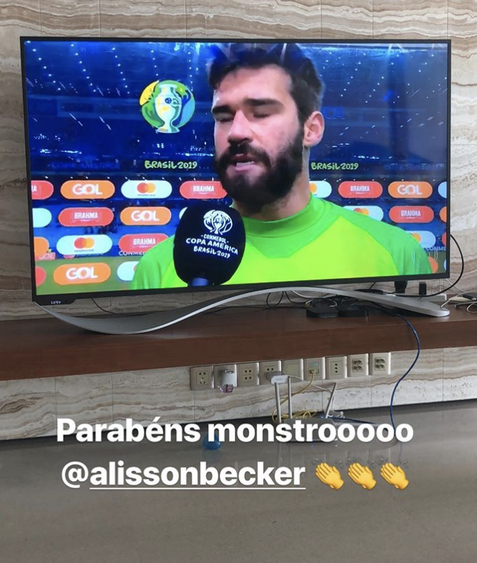 目前在恒大效力的两名巴西外援,保利尼奥和塔利斯卡纷纷围观了这场比赛,并为阿利松的精彩表现点赞。