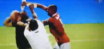 终场哨响,兴奋的马达加斯加球员往主帅头上倒水庆祝。