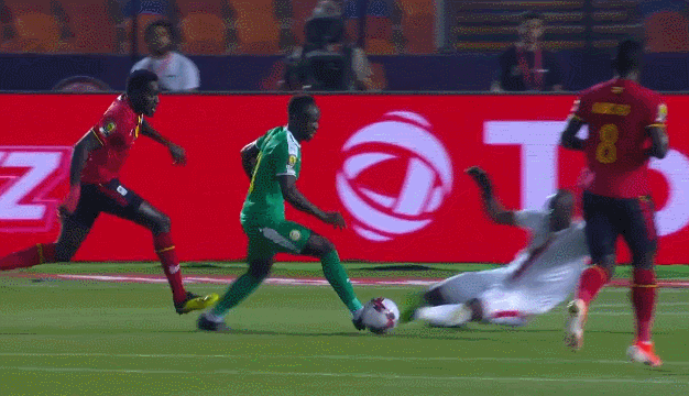 下半场第61分钟,乌干达门将奥扬戈放倒马内,裁判判罚点球,结果马内罚出的点球被奥扬戈扑出。