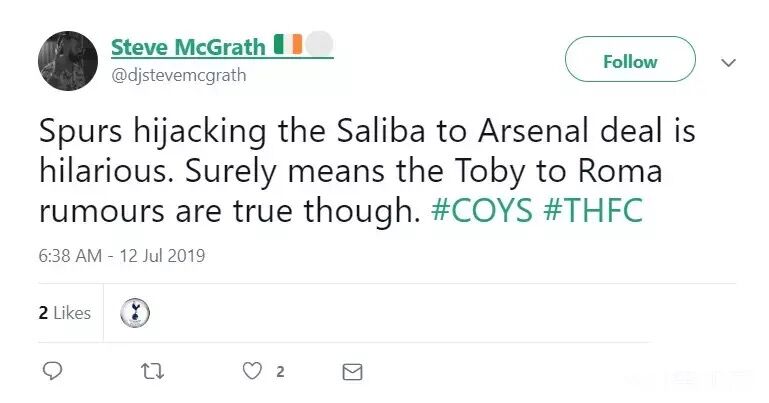 “热刺截胡阿森纳可真有意思,不过这是不是也意味着托比真的要走了?”