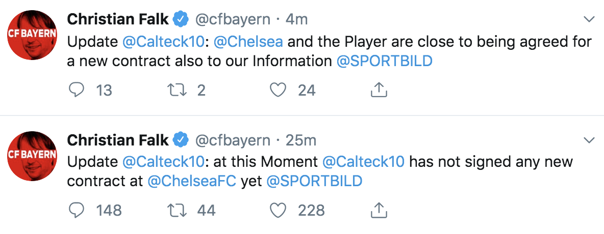 但是,过了约20分钟后,法尔克又更新道:“根据我们的消息,奥多伊确实接近和切尔西续约了。”